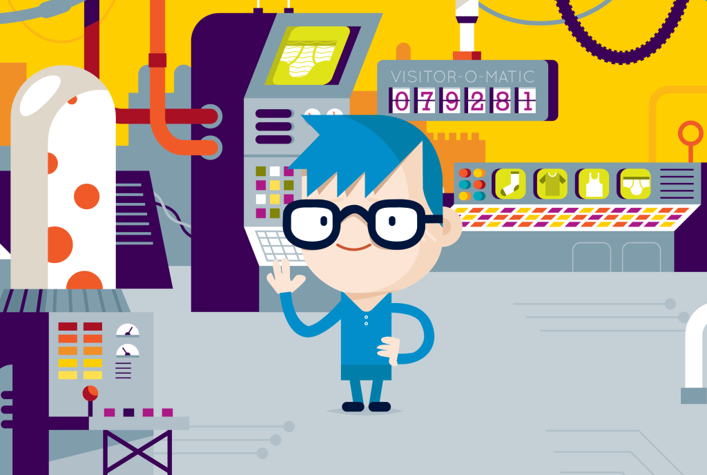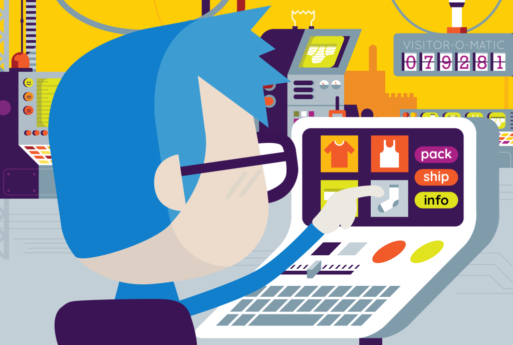 From his Controlroom, the E-man managed everything. Surrounded by machines, he monitored webshop parameters, handled orders, and ensured smooth fulfillment. He aimed to keep the shop running like a well-oiled machine—at least, that was the plan.